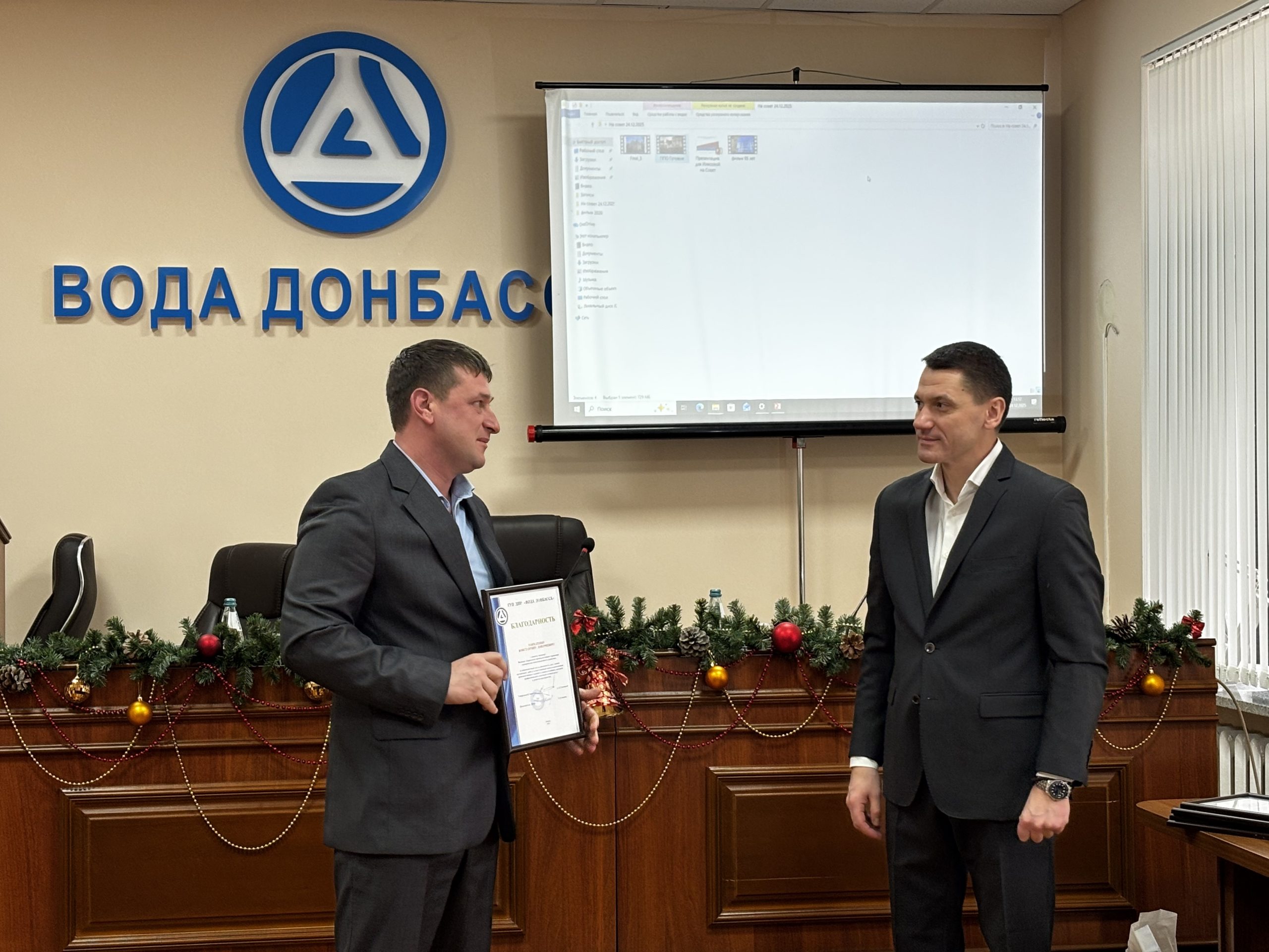 - В завершении совещания генеральный директор ГУП ДНР «Вода Донбасса» Андрей Григорьев вручил благодарности специалистам из шеф-регионов, военно-строительной компании, Фонда развития территорий: «Хочу искренне поблагодарить вас за вашу поддержку и оказанную помощь. Мы сталкиваемся с непростыми вызовами, но именно благодаря сплоченности процесс восстановления и обновления коммунальной инфраструктуры Донецкой Народной Республики идет ускоренными темпами. В условиях острой нехватки кадров ваша помощь неоценима!».