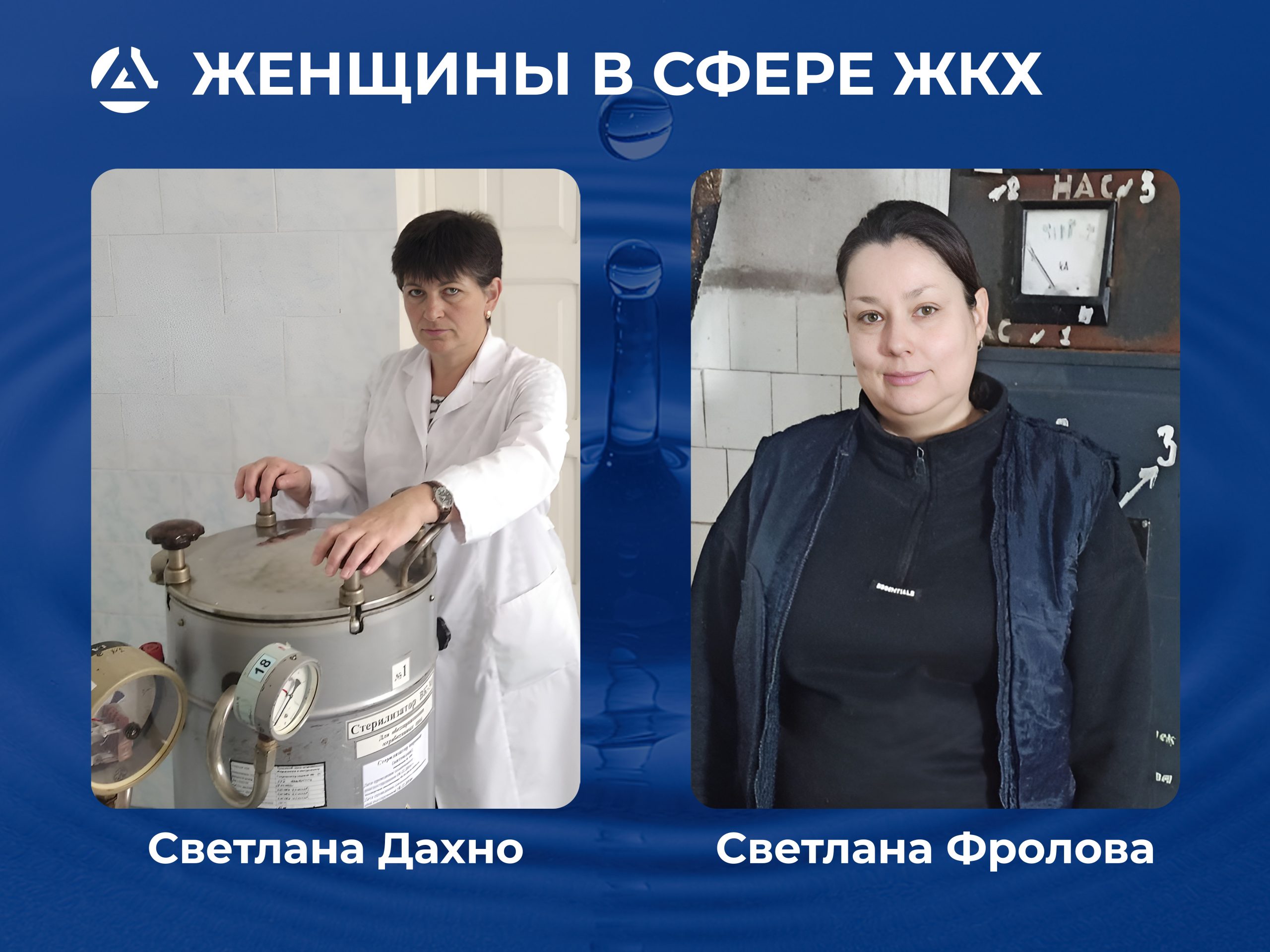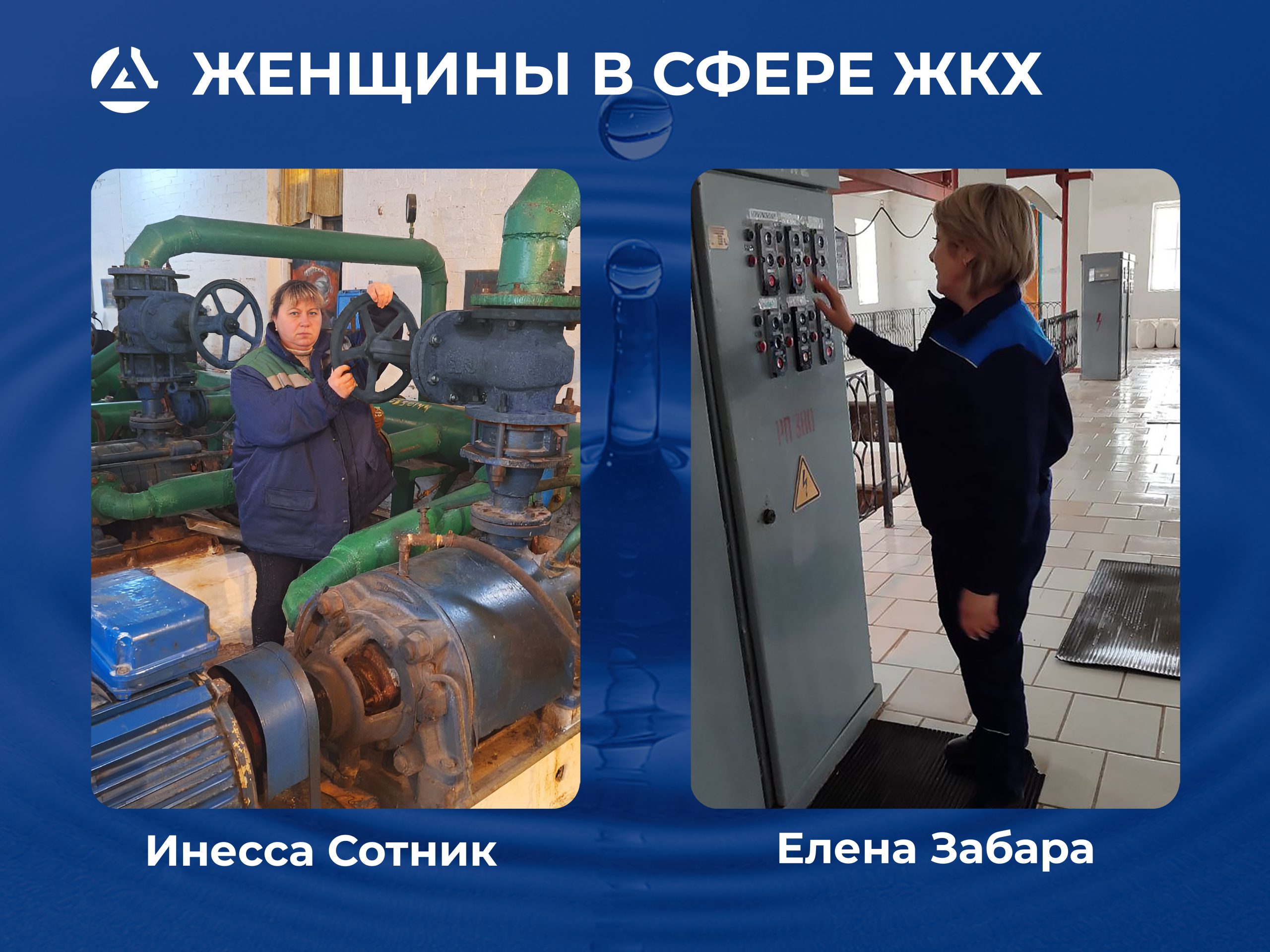 Ее многолетний опыт в сфере водоснабжения начался в 1994 году с должности оператора хлораторных установок и быстро зарекомендовала себя как надёжный и ответственный специалист. Светлана проводит лабораторные исследования и следит за соблюдением показателей качества воды. Она – настоящий профессионал, который заботится о том, чтобы вода соответствовала нормам. - Инесса Владимировна Сотник и Светлана Викторовна Фролова – работают машинистами насосных установок в Енакиевском филиале.