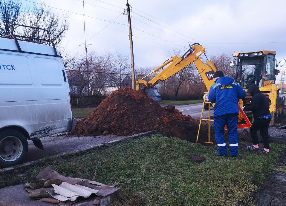 Ремонтная бригада “Вода Донбасса” заменила аварийный участок водопровода по улице Строительная